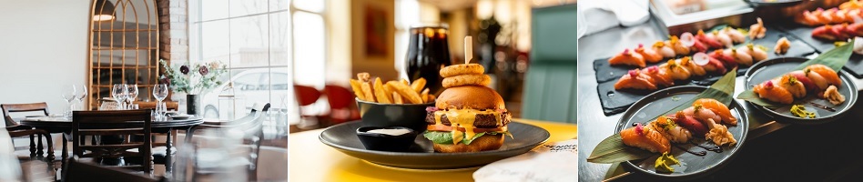 Tag en god ven, veninde, kollega, din kæreste eller en anden under armen og byd på én lækker middag. Skab jer et åndehul i den hektiske hverdag, sæt jer til rette og stift bekendtskab med en saftig steak, en lækker sushi menu, talrige tapasanretninger eller smagfulde burgere. Valget er jeres. Velbekomme!